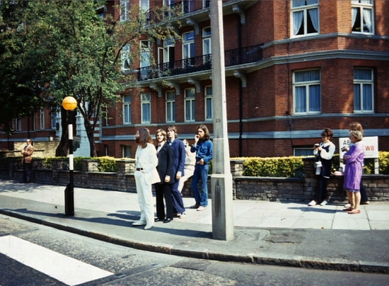 Questa è la prima delle 6 foto sulle strisce pedonali (andata). Paul è scalzo.