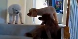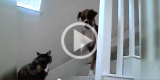 Cani dolcissimi terrorizzati da gatti che gli sbarrano il passaggio: una compilation veramente drammatica :-)