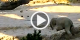 Leoncino spaventa un cagnolino