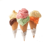 "Ci sono tre donne sedute su una panchina che mangiano il gelato.