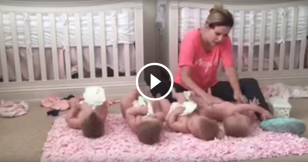 Come cambiare i pannolini a 4 gemelline scatenate