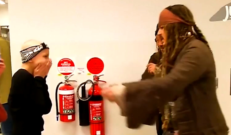 Johnny Depp vestito da PIRATA visita i bimbi un ospedale pediatrico