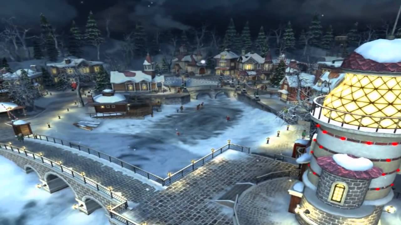 E’ notte, il cielo stellato, la neve, la musichetta natalizia in sottofondo… e la slitta di Babbo Natale parcheggiata su un tetto, forse un pò strettino per le povere renne! Anche le renne con l’arrivo del Natale possono mettere su qualche chilo in più!