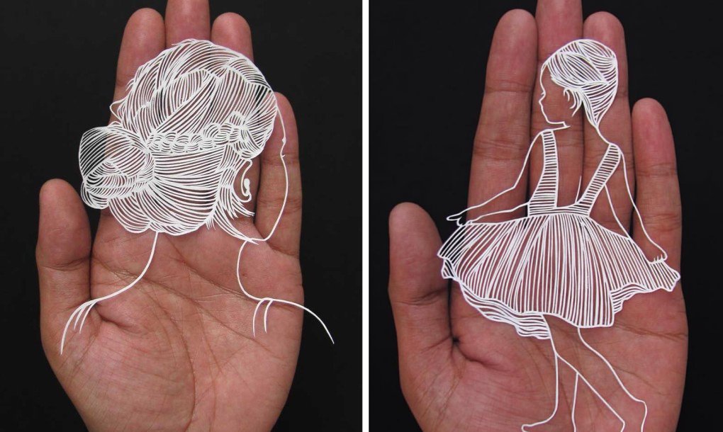 Queste opere sono delle realizzazioni di Parth Kothekar, un’artista di Ahmedabad, in India, che crea degli straordinari ritagli di carta pieni di poesia. Tutti i lavori sono disegnati e ritagliati a mano. I ritagli di carta vengono poi sistemati in mezzo a due lastrine di vetro, per preservarne la forma. Kothekar crea ritagli di carta più piccoli per realizzare anche orecchini e ciondoli in argento, protetti dal vetro. “Le mie opere si basano su aspetti quotidiani della vita. Se si tratta di una sfida, mi motiva. Lavorando con la carta non è mai certo il risultato finale sino a che l’opera non è finita. E’ la curiosità di scoprire se ho capito che mi fa andare avanti. Sento la ‘vita’ in ogni creazione”.