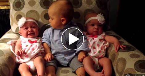 Simpatica reazione di questo bimbo confuso dalla coppia di gemelline così identiche tra loro. Va completamente nel pallone: non se l’aspettava proprio! Inizia a voltarsi ripetutamente guardando prima l’una e poi l’altra e guardando verso la telecamera con aria perplessa sembra chiedersi: “Ma come è possibile che sia di quà e di là allo stesso tempo?”.