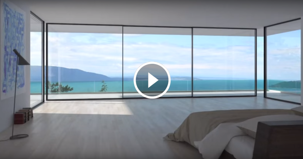 Finestre scorrevoli elettroniche che scompaiono nel muro, facendo entrare il paesaggio in casa