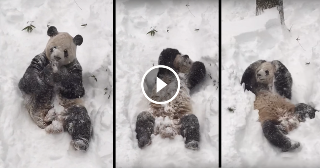 Tian Tian è nato nel Centro di ricerca e conservazione dei panda giganti in Cina il 27 agosto 1997. Si è svegliato e ha trovato tantissima neve. Si è talmente entusiasmato che ha cominciato a giocare e a rotolarsi nella neve. I panda giganti hanno un pelo folto che li protegge dal freddo, nessun problema quindi, puro divertimento!