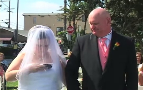 NON MI DISTURBA AFFATTO: LA SPOSA CONTROLLA IL CELLULARE DURANTE IL MATRIMONIO.