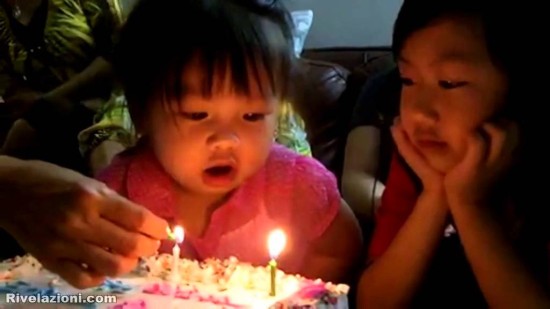 Questa bimba cerca di spegnere le candeline…