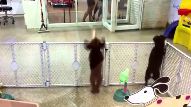 Questo cagnolino vede la sua padroncina che é venuta a prenderlo… Quando la felicità diventa una danza.